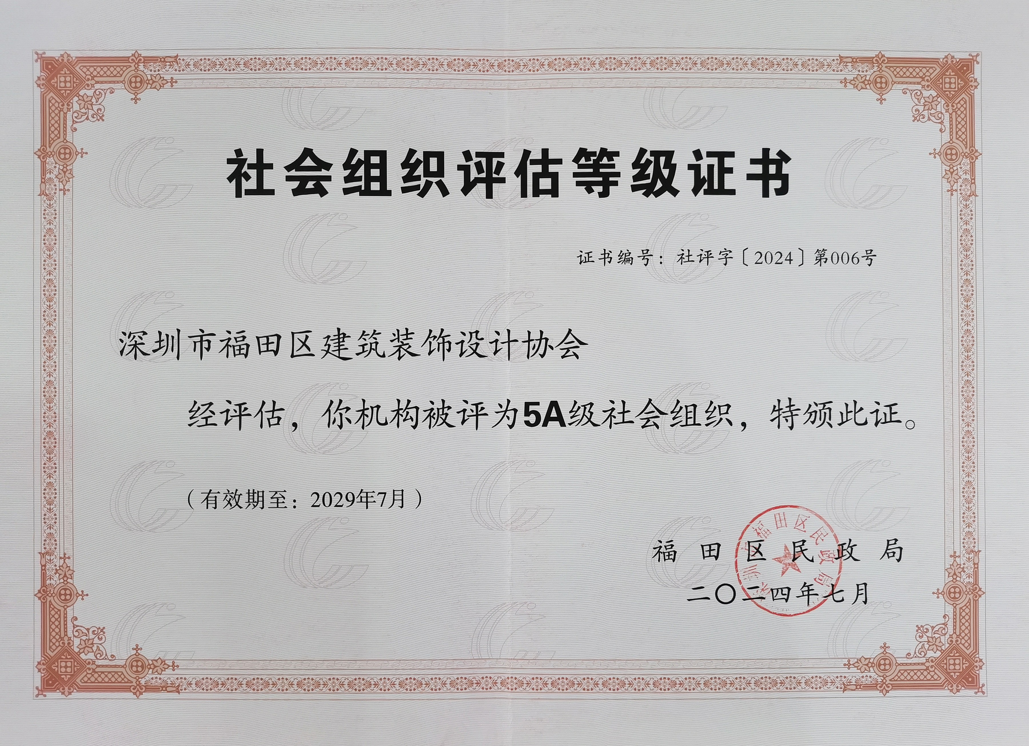 協(xié)會(huì)獲頒5A級(jí)社會(huì)組織牌匾與證書(shū)