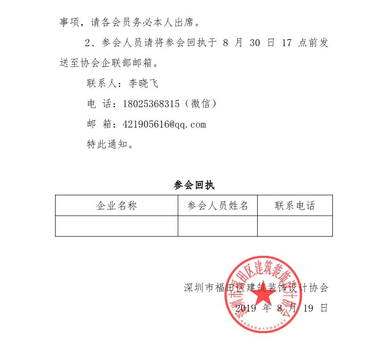 關(guān)于召開深圳市福田區(qū)建筑裝飾設(shè)計(jì)協(xié)會(huì)第三次會(huì)員代表大會(huì)暨一屆三次理事會(huì)、常務(wù)理事會(huì)的通知